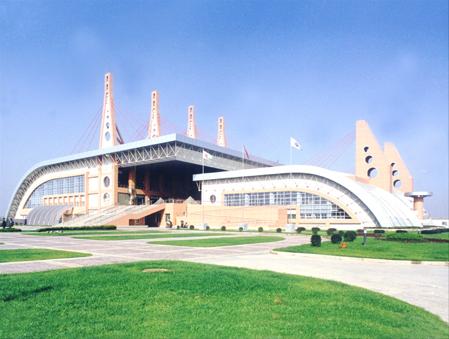 斜拉索結構,造型新穎大方,現代氣息濃厚。50米×25.2米的縣空游泳池,幾何尺寸誤差僅為2毫米,結構試水月余無滲漏。