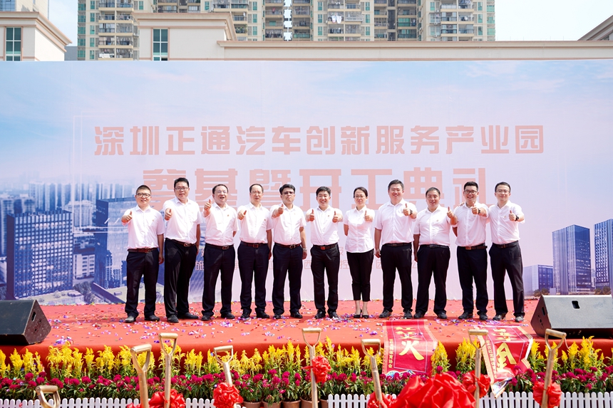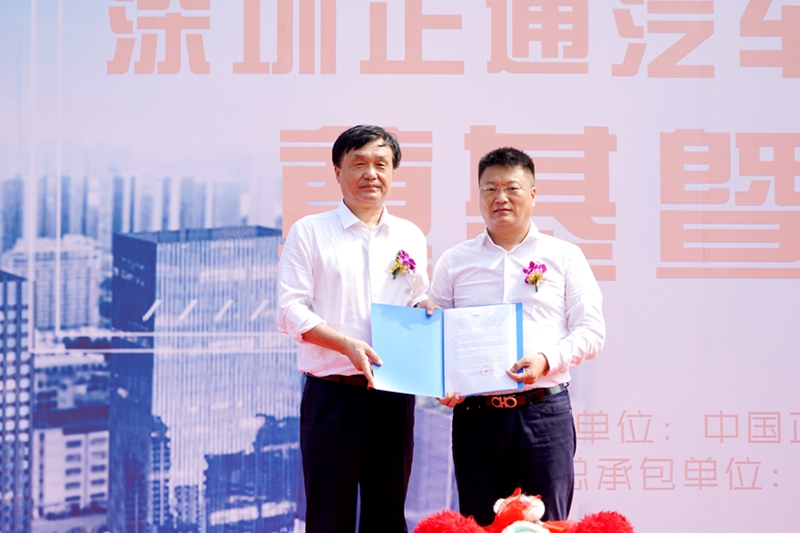 9月7日上午,位于深圳市龍華區(qū)和平路上的深圳正通汽車創(chuàng)新服務(wù)產(chǎn)業(yè)園內(nèi)彩旗飄揚,鼓聲震天,一輛輛工程車整裝待發(fā),項目員工身著工裝,精神抖擻。這是陜建集團進軍大灣區(qū)市場的重點建設(shè)項目,也是三建集團集團在大灣區(qū)負責(zé)施工的首個大型項目,是集團公司“走出去”戰(zhàn)略邁出的重要一步。出席典禮儀式的主要領(lǐng)導(dǎo)有中國正通汽車服務(wù)控股有限公司(以下簡稱正通公司)副董事長王昆鵬、陜建集團黨委副書記、總經(jīng)理張文琪,副總經(jīng)理雷曉義、總會計師莫勇、集團公司董事長李家衛(wèi)、工會主席張穎、總會計師王斐、副總經(jīng)理任浩以及來自建設(shè)單位和施工單位的100多人共同見證了這一歷史時刻。
