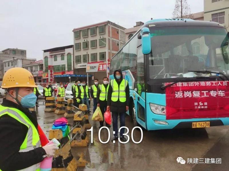 2月26日,三建集團二公司、三公司、工程管理部等單位安排專車赴四川省萬源市、商洛市洛南縣、安康市漢濱區等地市護送75名返崗務工人員陸續回到省市重點建設項目,保障務工人員安全、放心的回到施工一線,助力集團公司快速平穩實現復工生產。