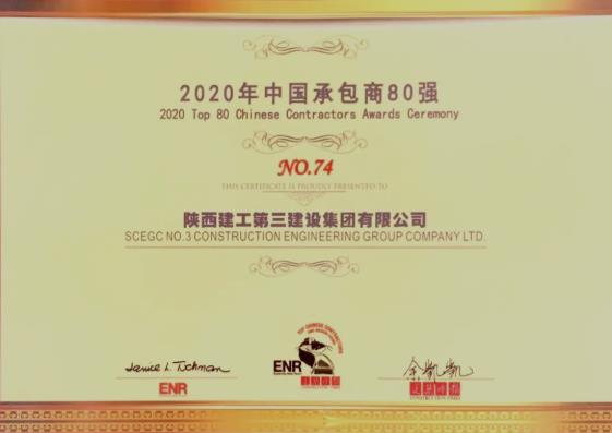 11月27日,由美國《工程新聞記錄》(簡稱ENR)和中國《建筑時報》發布中國承包商80強榜單。此次承包商80強的入圍門檻由去年的47億元猛增到今年的65億元,集團公司位列第74位,連續兩年入圍。