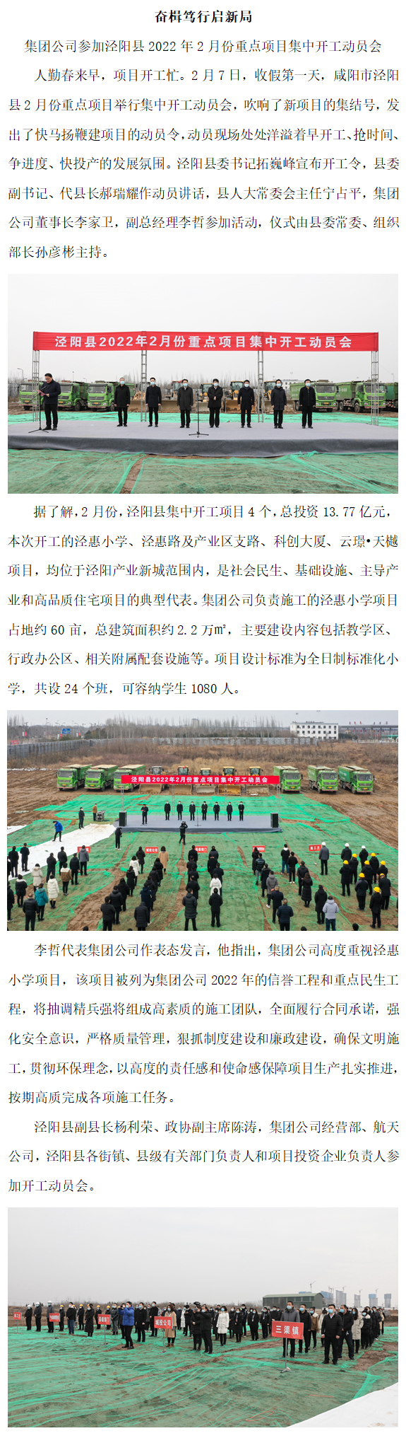 奮楫篤行啟新局——集團公司參加涇陽縣2022年2月份重點項目集中開工動員會